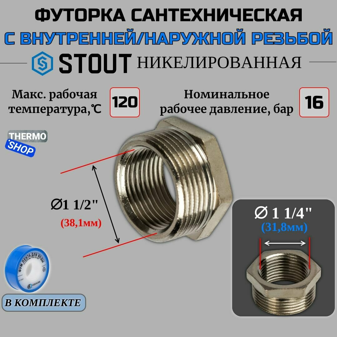 **Футорка Stout** позволяет быстро смонтировать водопроводную систему и выполнить переход с одной резьбы на другую, соединив между собой трубы разного диаметра. Отличается простотой и быстротой монтажа. При этом формируется надежный и герметичный стык.
