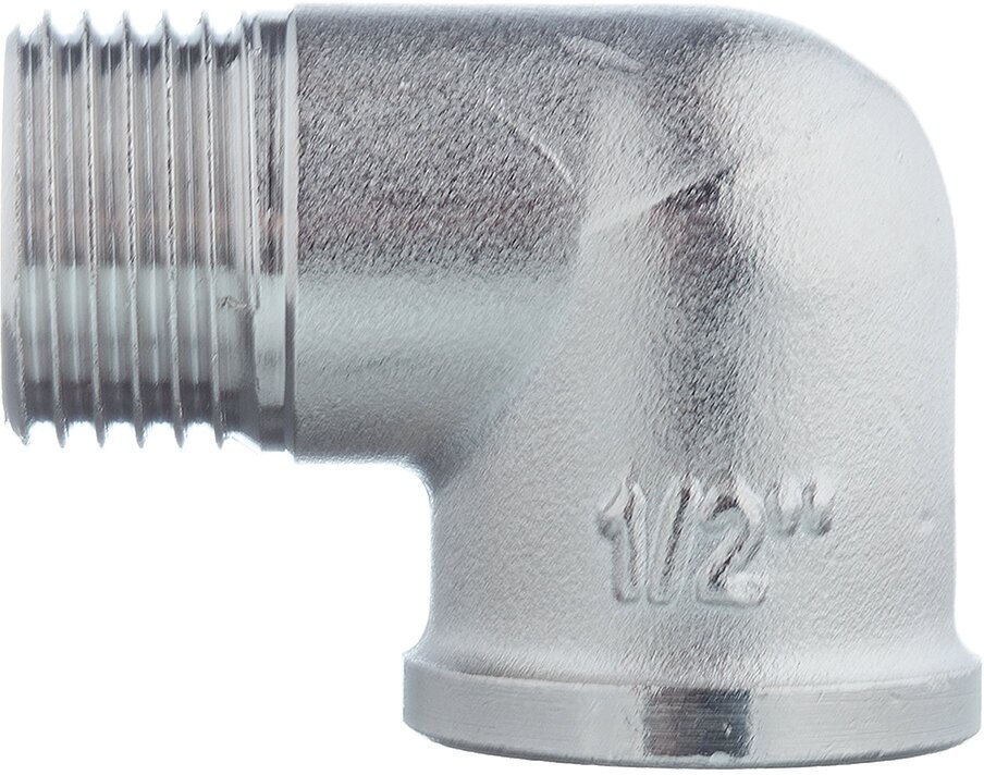 **Угольник Stout** предназначен для монтажа систем водоснабжения и отопления. Выдерживает воздействие высоких температур, не деформируясь и не покрываясь коррозией. Оснащен двумя видами резьбы — наружней и внутренней, что обеспечивает надежное и герметичное соединение.