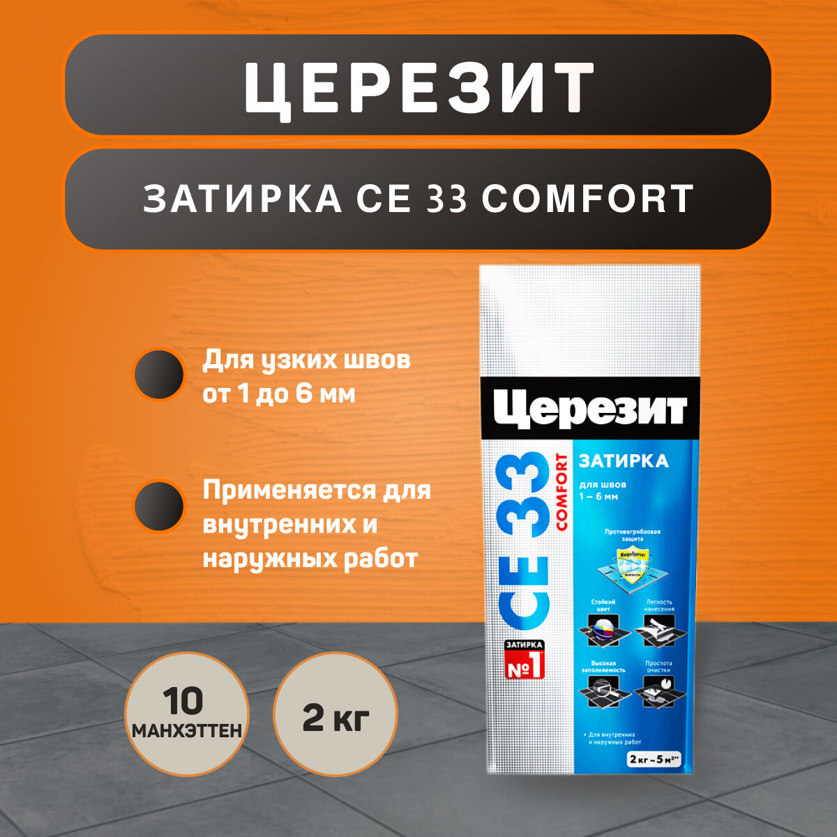 **Цветная затирка для швов Ceresit CE 33 Comfort** - предназначена для заполнения швов керамических и каменных облицовок, устроенных на полах и стенах внутри и снаружи зданий. Применяется при ширине шва от 1 до 6 мм на недеформирующихся основаниях: бетоне, цементных стяжках и штукатурках.