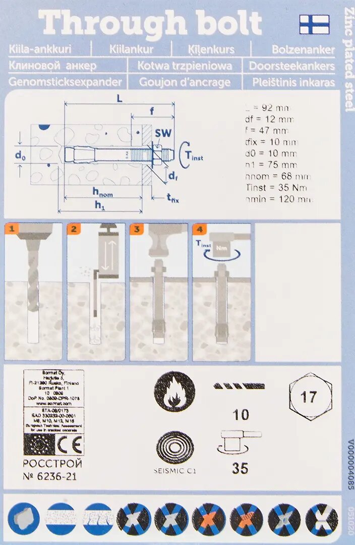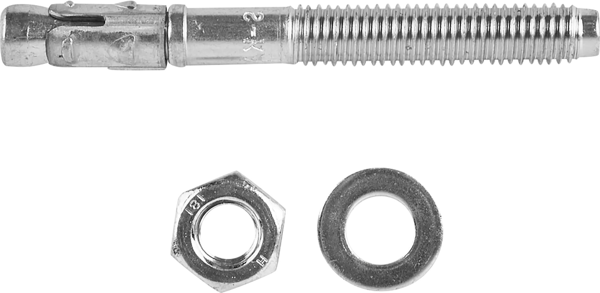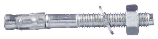 При затягивании распорная гильза расширяется, создавая фрикционный зажим со стенками отверстия. Оцинкованный - для сухих помещений и временных креплений на улице. Размер М10, длина 92 мм, Max толщина прикрепляемого материала 10 мм. Количество в упаковке 40 шт.