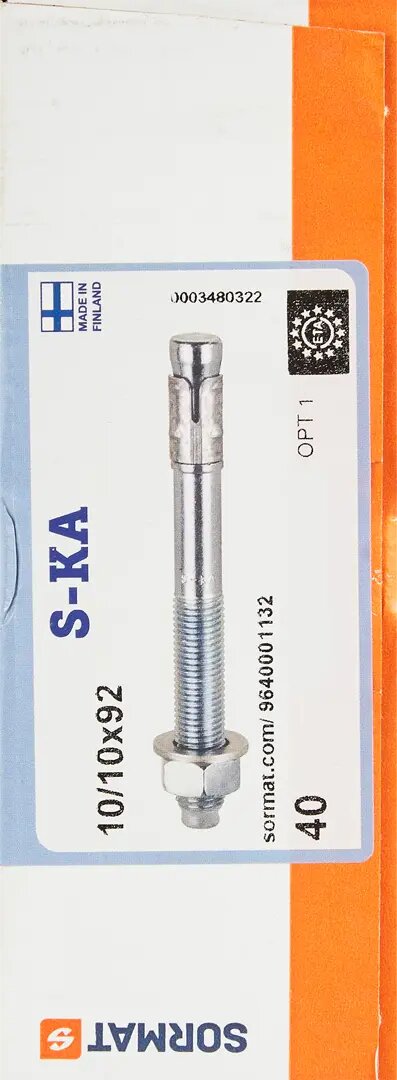 Клиновой анкер Sormat S-KA 10/10х92 мм 40 шт.