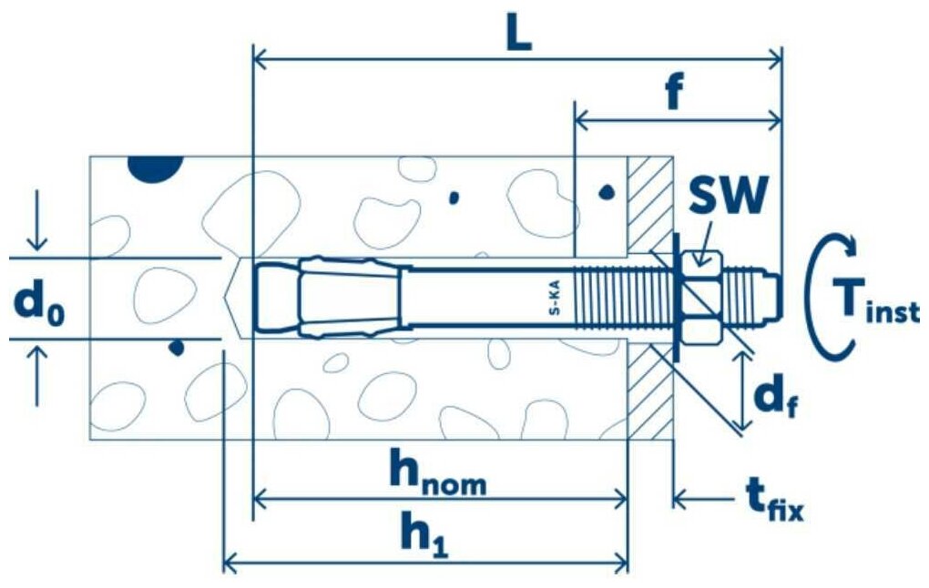 Анкер с контролируемым моментом затяжки для предустановки, сквозного и дистанционного монтажа.