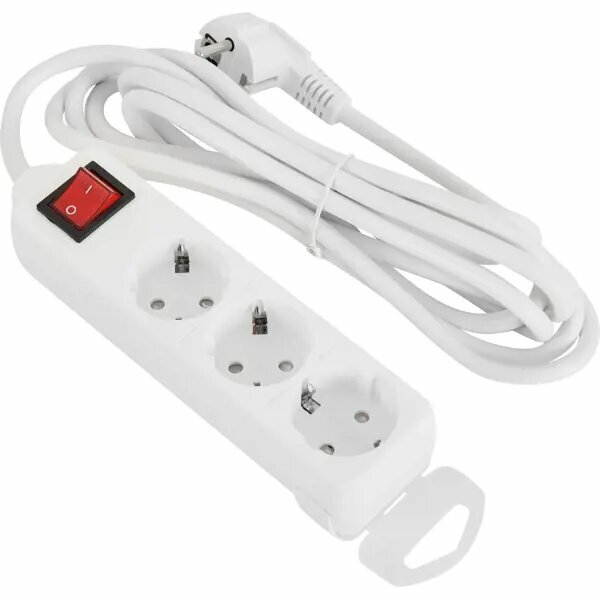 Устройство с заземлением оборудовано стандартными разъемами на 3 розетки и выключателем. Максимальная мощность удлинителя составляет 3500 Вт. Гарантия производителя равняется 5 годам.