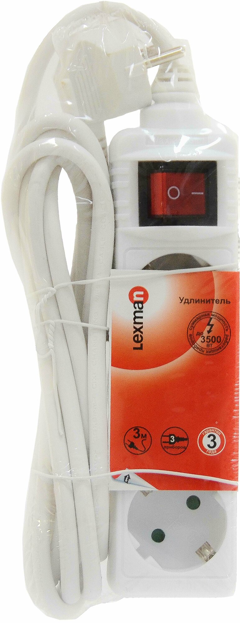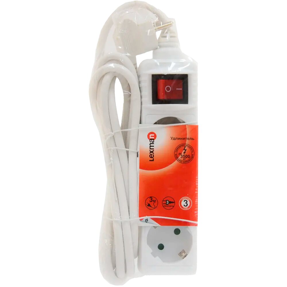 Удлинитель бытовой Lexman 3 розетки с заземлением 3х1.5 мм 3 м 3500 Вт цвет белый