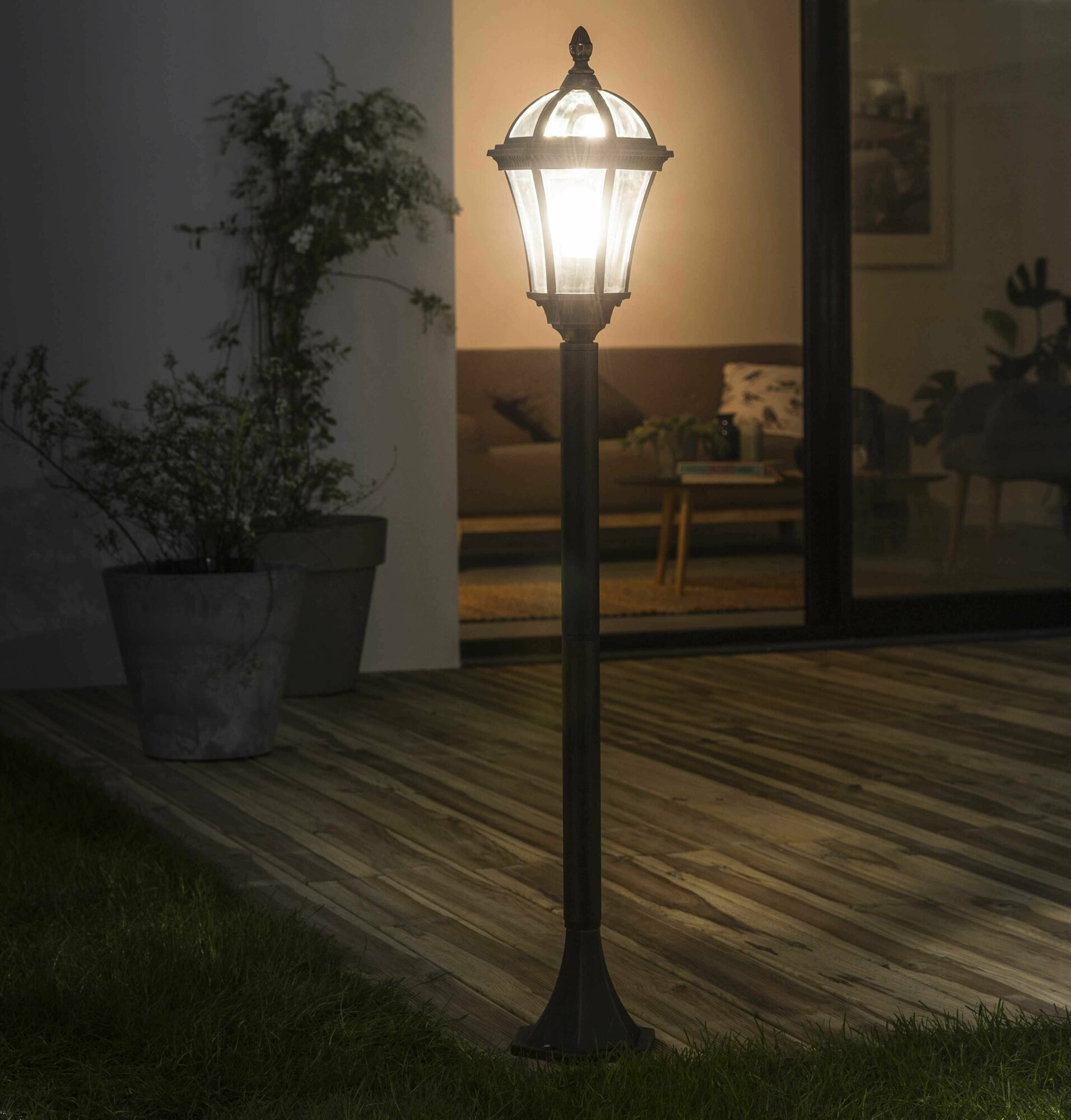 **Столб уличный Inspire Jaipur** подойдет для организации основного или дополнительного освещения во дворе или в саду, для подсветки тротуаров и дорожек, архитектурных объектов. По внешнему виду напоминает старинные фонари, создает уютную атмосферу. Работает от сети с напряжением 220-240 В. Корпус, изготовленный из окрашенного алюминия, обеспечивает защиту от брызг воды (степень защиты — IP44). Габариты модели — 17,3 × 111,2 × 17,3 см, цвет — черный. В качестве источника света используются лампы мощностью до 25 Вт с цоколем Е27.