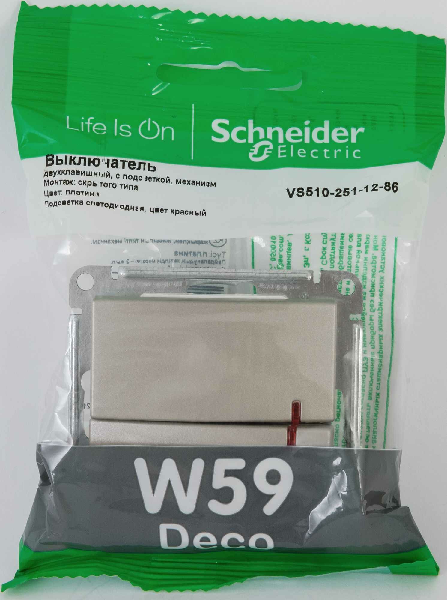 Выключатель встраиваемый Schneider Electric W59 Deco 2 клавиши с подсветкой цвет платина