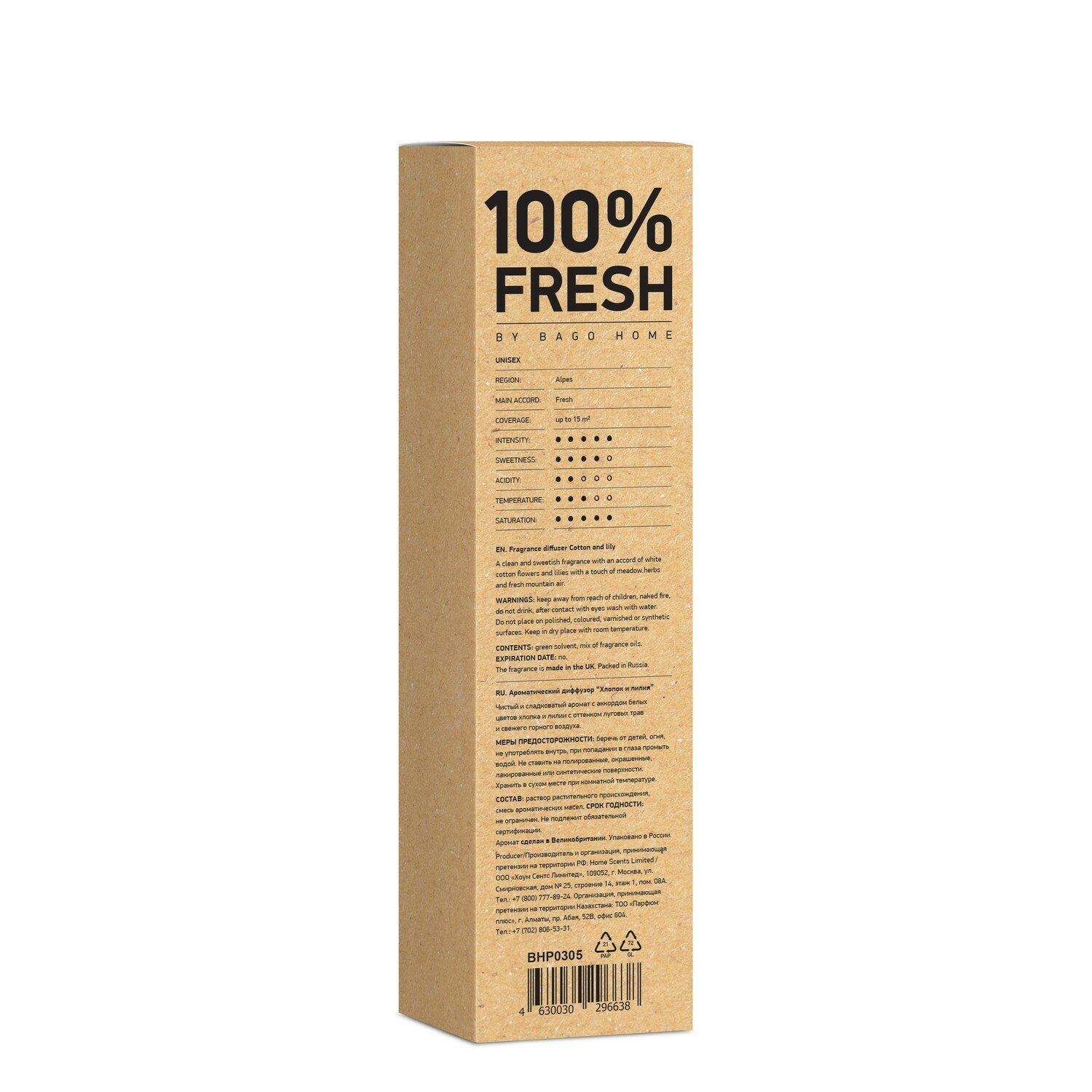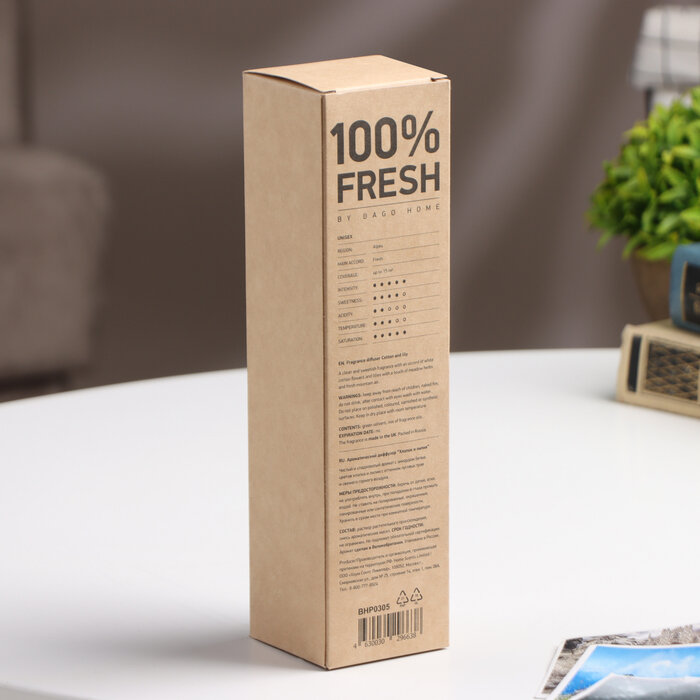 | Особенности | Ароматический диффузор "Хлопок и лилия" от BAGO home дарит цветочную нежность дикого поля. Открываясь прозрачной чистотой цветов хлопка в верхнем ярусе, свежий аромат погружается в утонченную нежность прохладной лилии в сердце пирамиды. Воздушное облако луговых трав веет чистотой горного воздуха в нижних нотах. |