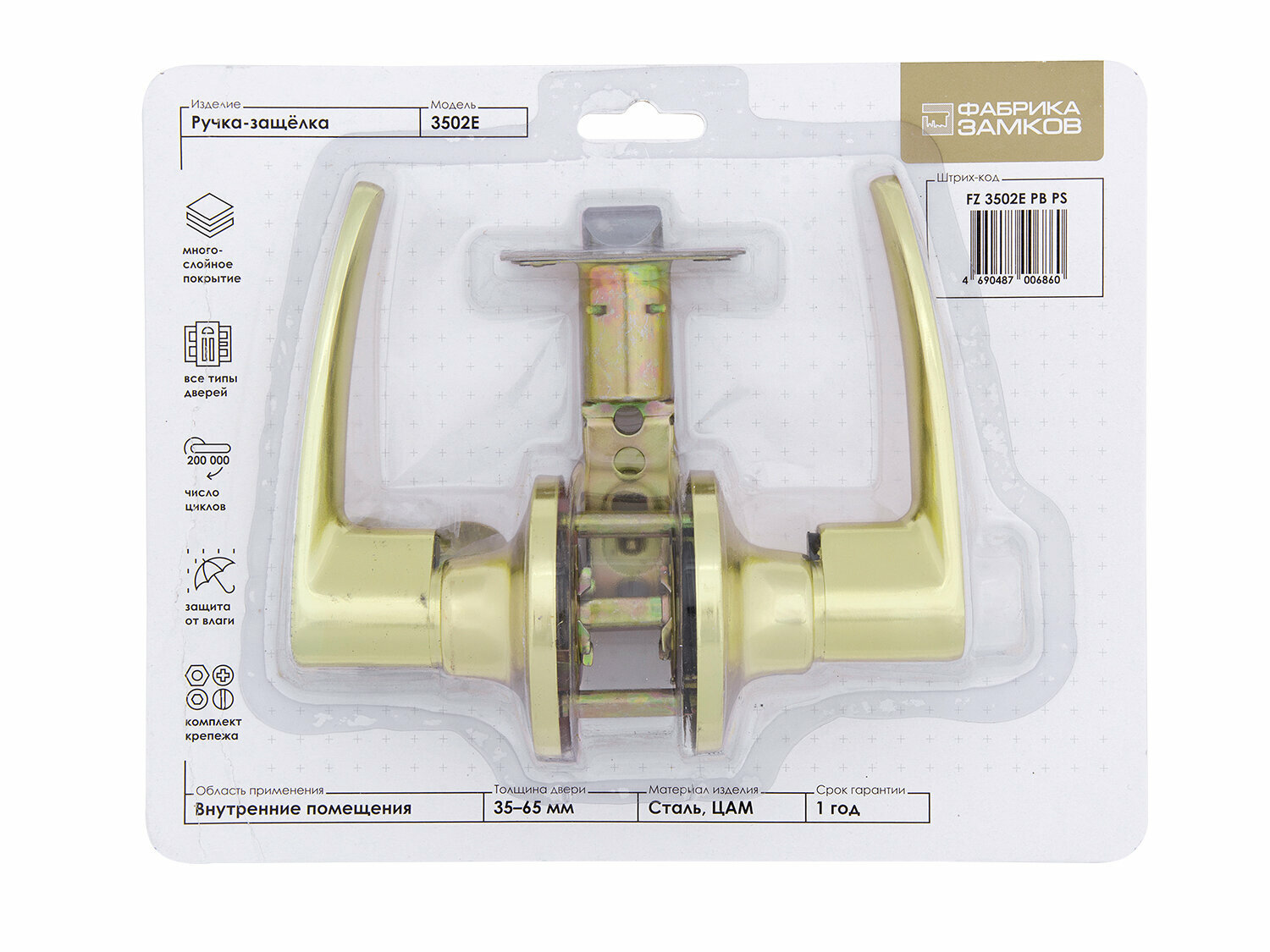 Ручка-защёлка 3502 PB PS без запирания цвет золото ФАБРИКА ЗАМКОВ