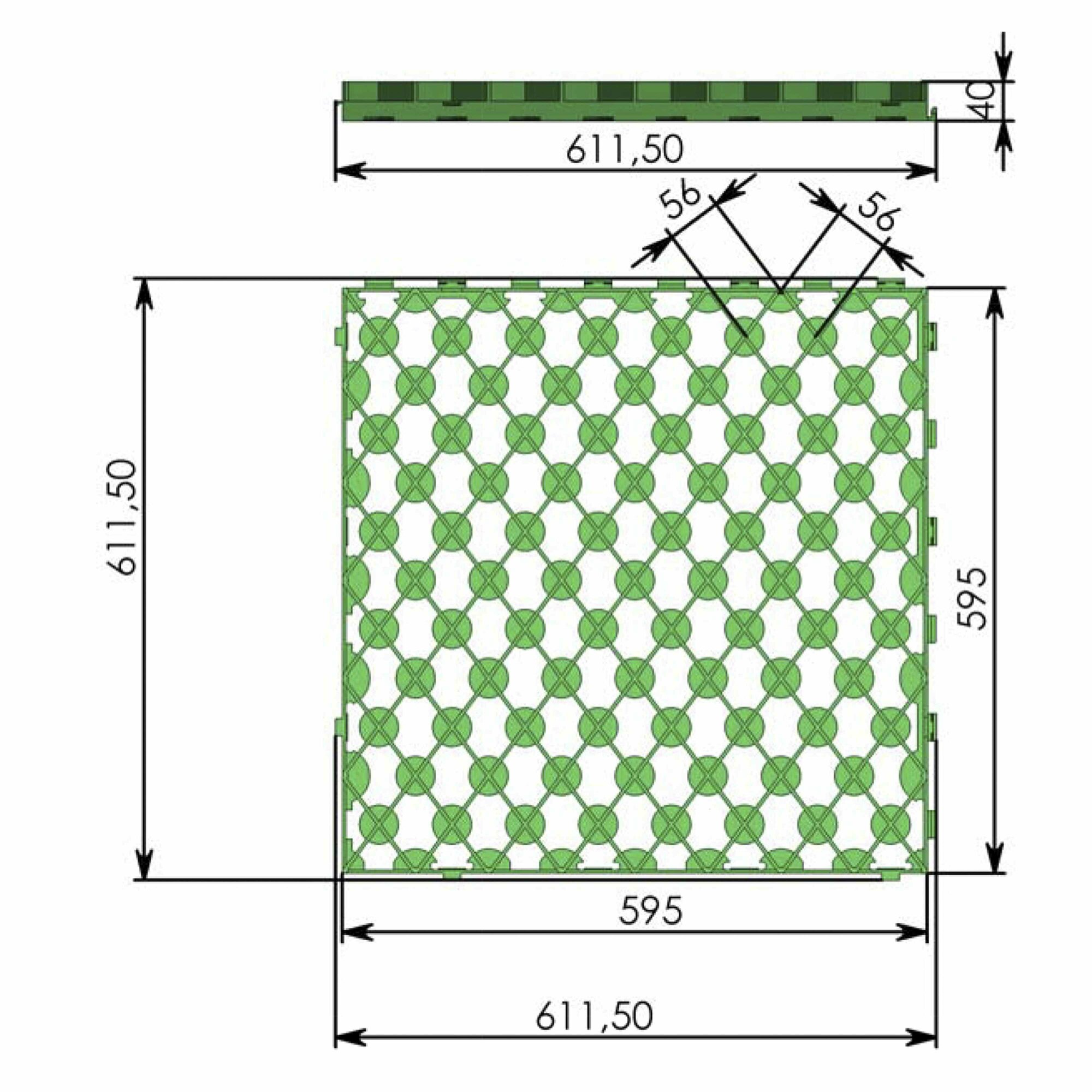 Газонная решётка 60х60 см С250 пластик цвет зелёный Gidrolica 600х600х40 мм - зеленая