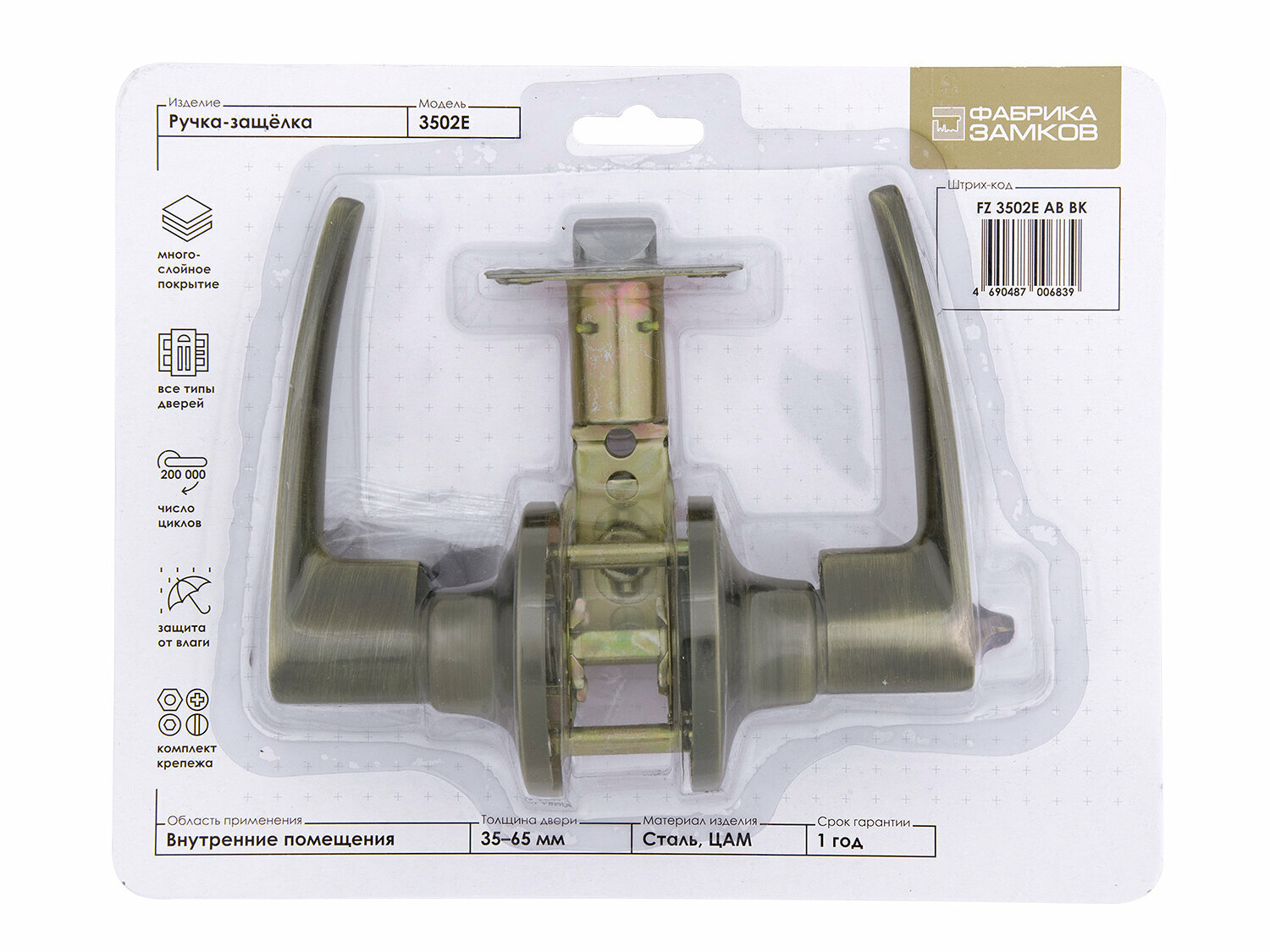 Ручка-защёлка 3502 AB BK с фиксатором цвет бронза ФАБРИКА ЗАМКОВ