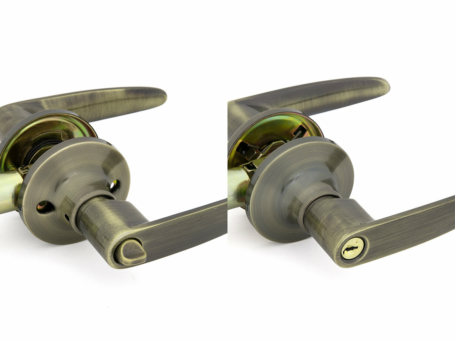 Ручка-защёлка 3502 AB BK – нажимная ручка-защелка с замком с внешней стороны и заверткой с внутренней. Бронзовый цвет с эффектом состаривания, 6 слоев покрытия (включая двойной слой лака).