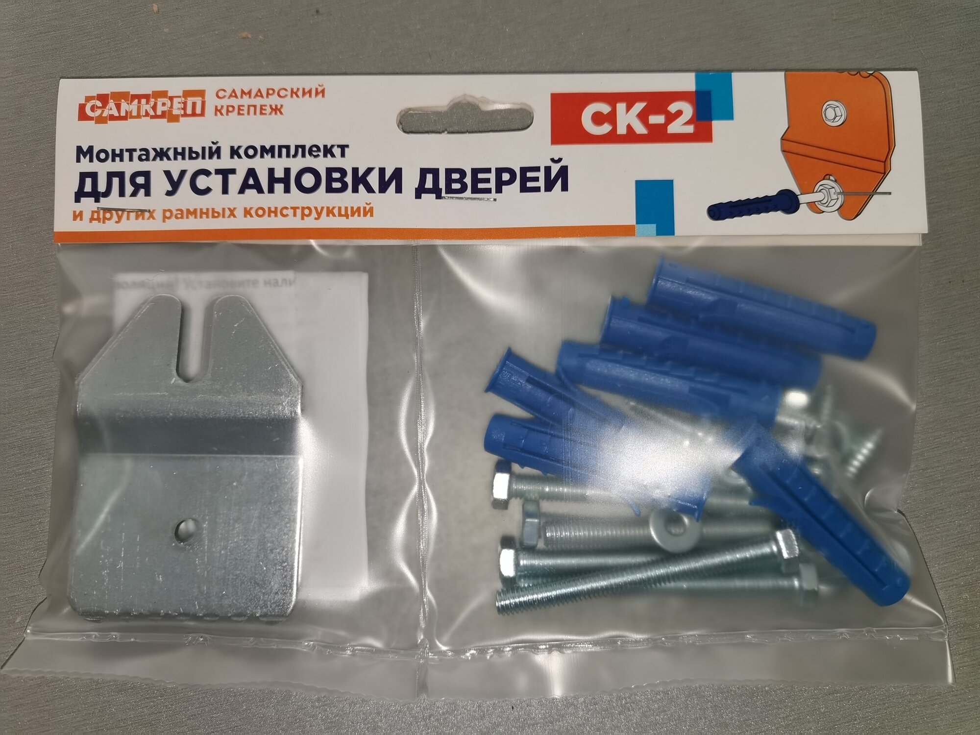 Монтажный комплект для установки межкомнатных дверей СК-2 позволяет быстро, удобно и надежно закрепить дверь в проёме. Возможна регулировка всей собранной дверной конструкции в проёме в трёх плоскостях. Подходит как для легких, так и для тяжелых дверей. Крепёжные скобы изготовлены из оцинкованной стали толщиной 2 мм. Не требует использования специального инструмента и профессиональных навыков установщика.