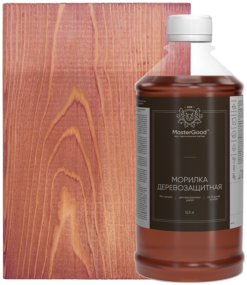**Морилка для дерева Good Master** предназначена для тонирования и придания вида ценных пород дерева, а также антисептирования (защиты от плесени и древоточцев) изделий из дерева, эксплуатирующихся внутри помещений. Возможно использование морилки для наружных работ, если поверхности, обработанные морилкой, покрываются влагостойкими лакокрасочными материалами, например «Лак яхтный».