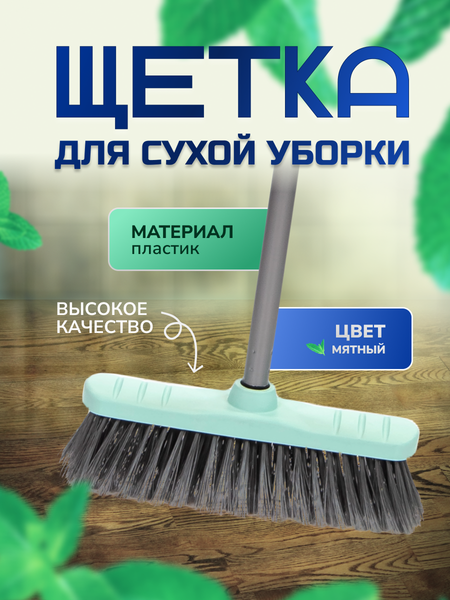 Щетка для пола с ручкой Inloran 110 см цвет мятный