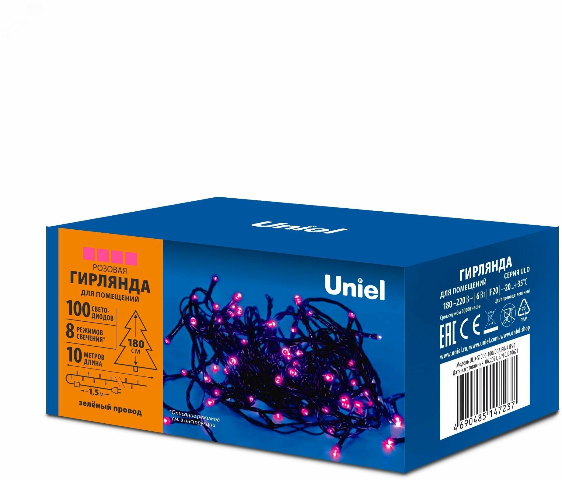 На сегодняшний день товар «Электрогирлянда комнатная Uniel Нить 10м 100 ламп розовый 8 режимов работы» можно купить с кешбеком в 1 магазине: Яндекс.Маркет