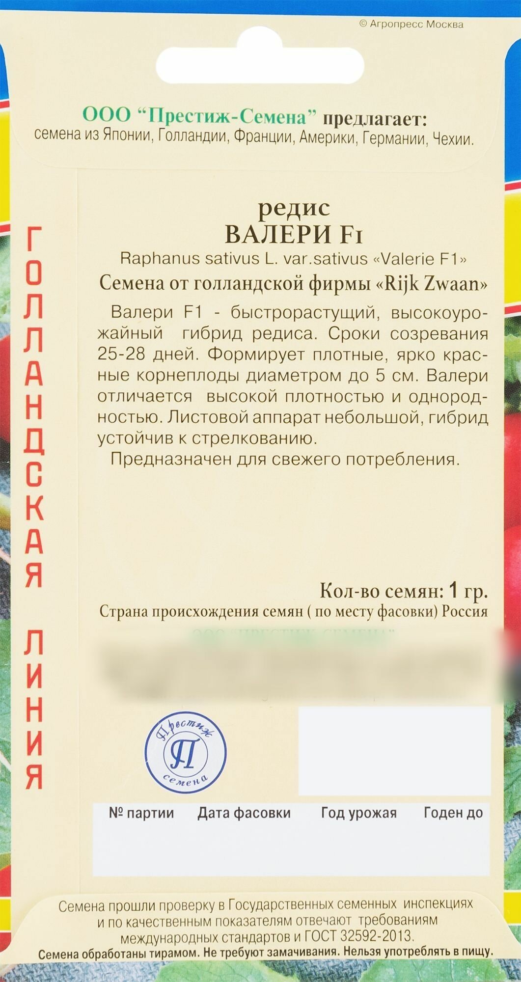 Семена Редис «Валери» F1 ПРЕСТИЖ СЕМЕНА