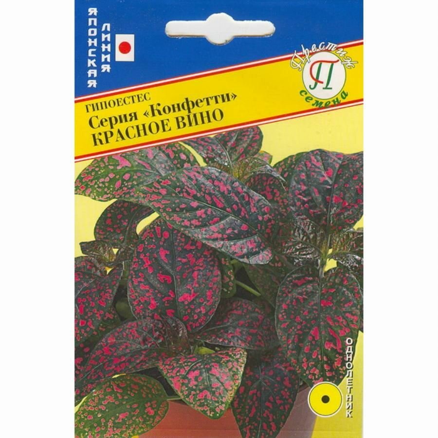 **Семена Гипоестес «Конфетти. Красное Вино»** предназначены для выращивания необычного однолетника с декоративными листьями, покрытыми красными пятнами неправильной формы. Растение высотой до 15 см красиво смотрится при высаживании вдоль бордюров и при групповых посадках, может выращиваться в комнатных условиях. Посев на рассаду производят в марте-апреле, на постоянное место высаживают после заморозков. Возможен посев сразу в грунт — начиная с мая.