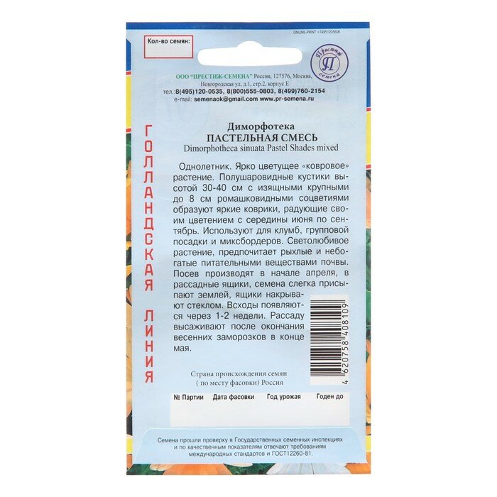 Сервис сравнения цен СкидкаГИД предлагает сравнить цены на товар «Семена Диморфотека «Пастельная» микс ПРЕСТИЖ СЕМЕНА»
