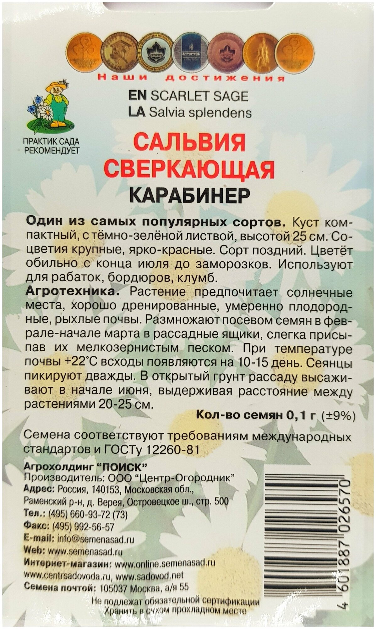 На сегодняшний день товар «Семена Сальвия Сверкающая «Карабинер» ПОИСК» можно купить с кешбеком в 1 магазине: Яндекс.Маркет