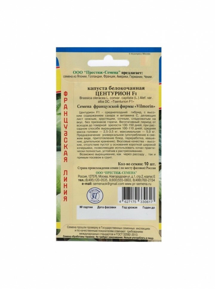 Семена Капуста белокочанная «Центурион» F1 ПРЕСТИЖ СЕМЕНА