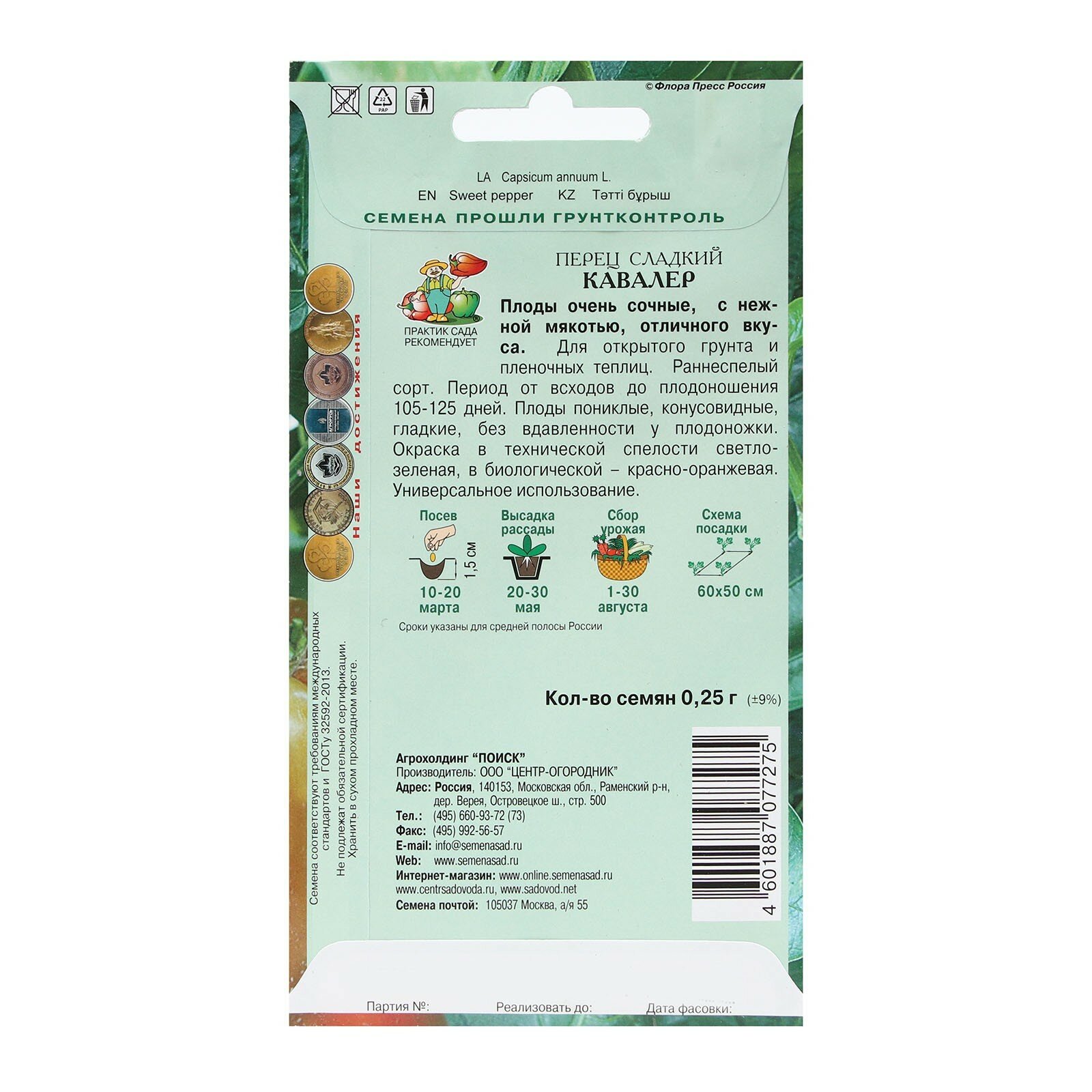Семена Перец сладкий «Кавалер» ПОИСК