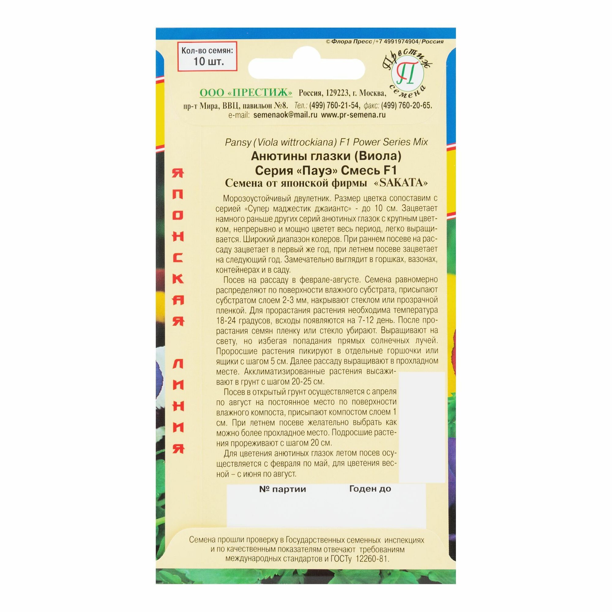 Семена Анютины глазки «Пауэ» F1 микс ПРЕСТИЖ СЕМЕНА