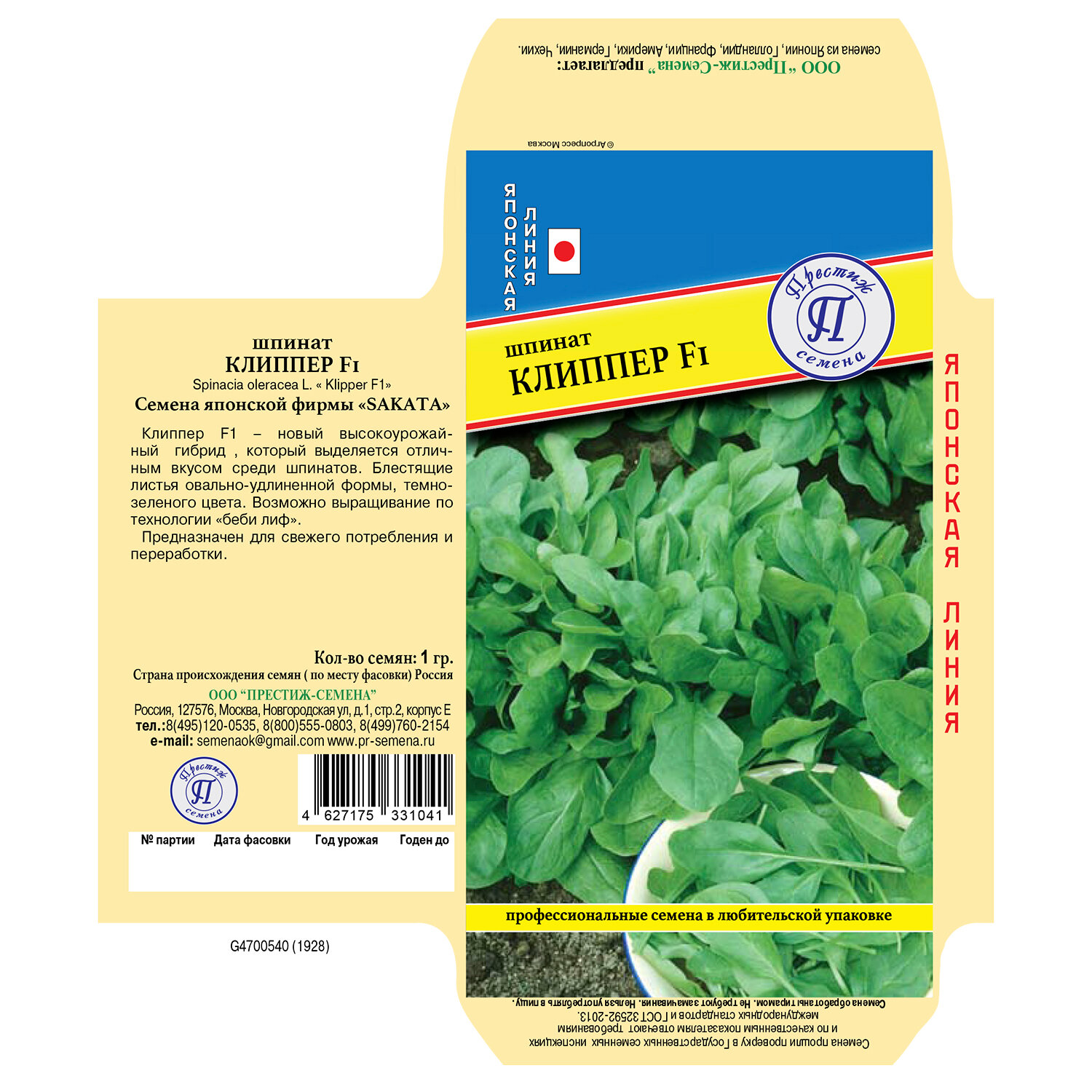 Семена Шпинат «Клиппер» F1 ПРЕСТИЖ СЕМЕНА