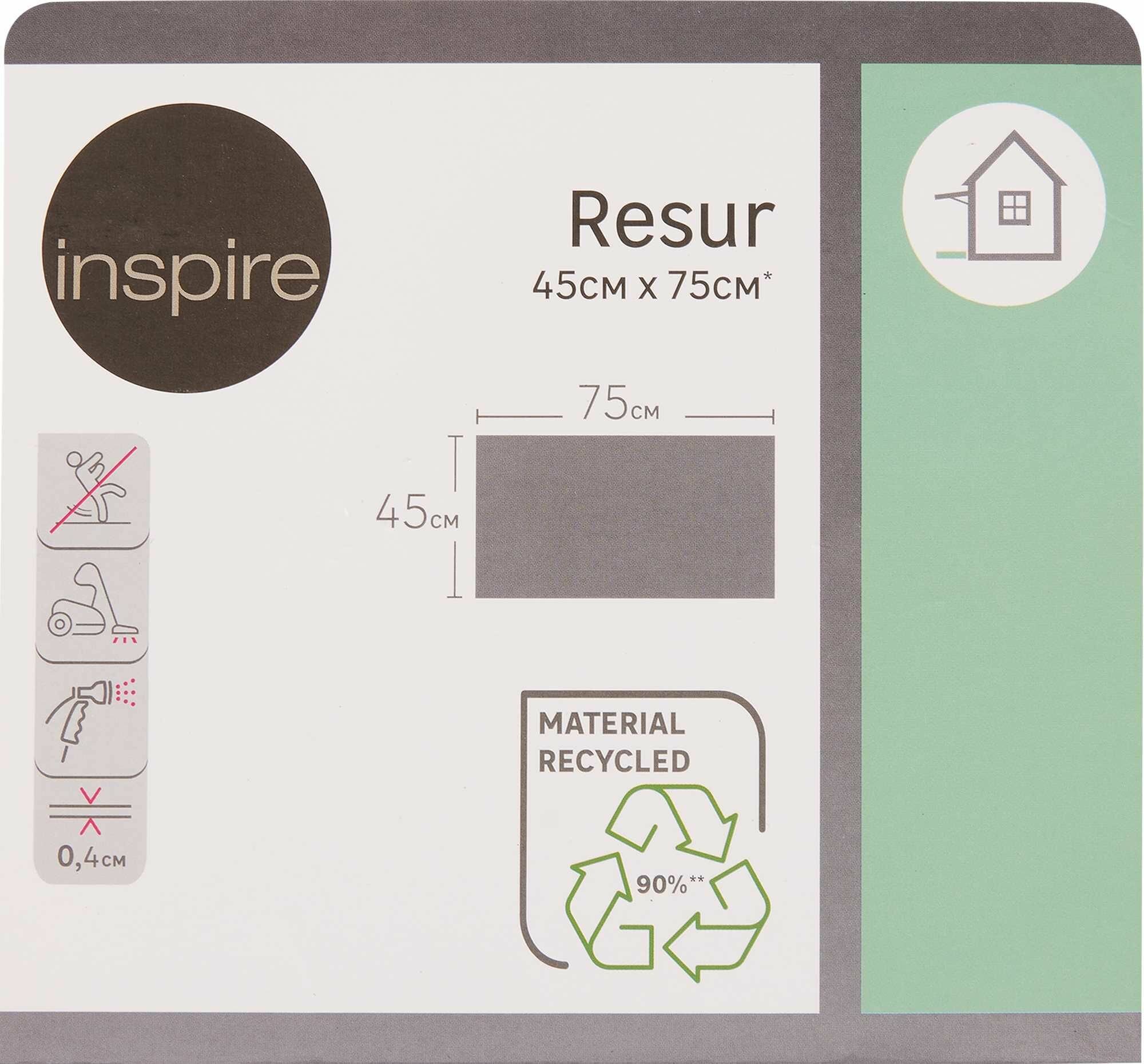 **Коврик придверный Inspire Resur WLM A** изготовлен из резины. Материал не скользит, устойчив к негативному воздействию влаги и мороза, поэтому может располагаться у входной двери с улицы.