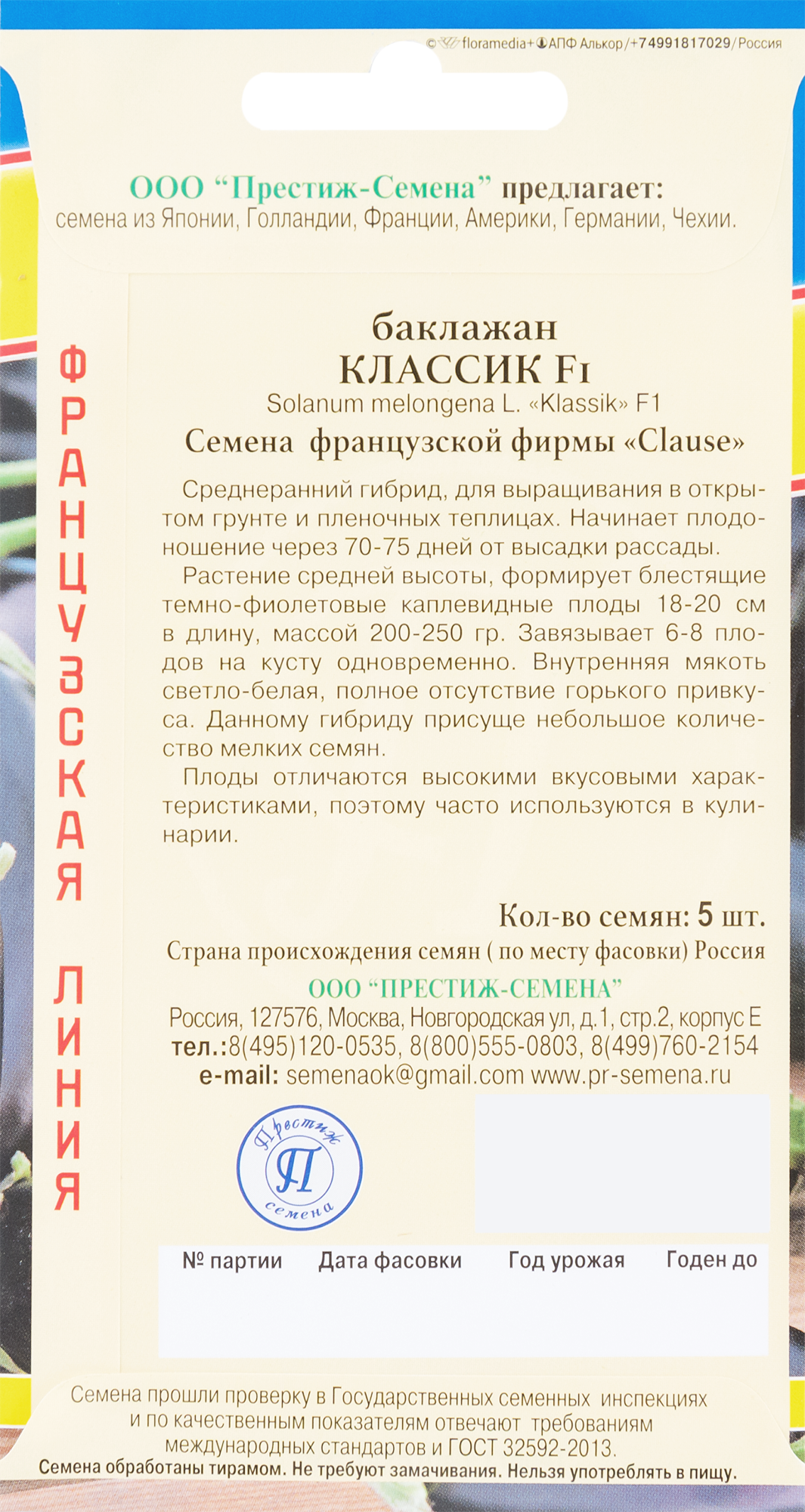 Семена Баклажан «Классик» F1 ПРЕСТИЖ СЕМЕНА