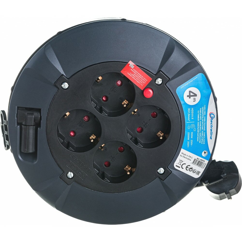 Удлинитель на катушке Electraline 4 розетки с заземлением 3х1 мм 4 м цвет черный