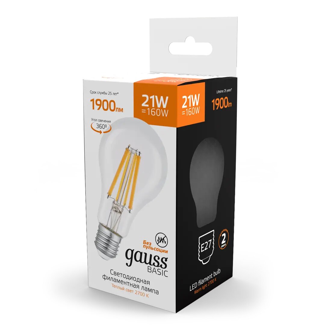Лампочка Gauss Fil A70 E27 21 Вт груша 1900 Лм теплый белый