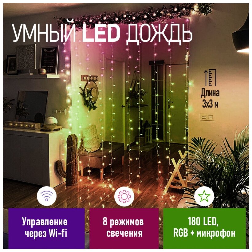 Сервис сравнения цен СкидкаГИД предлагает сравнить цены на товар «Электрогирлянда комнатная Neon-night занавес 3х3м 180 ламп разноцветный свет 8 режимов работы»