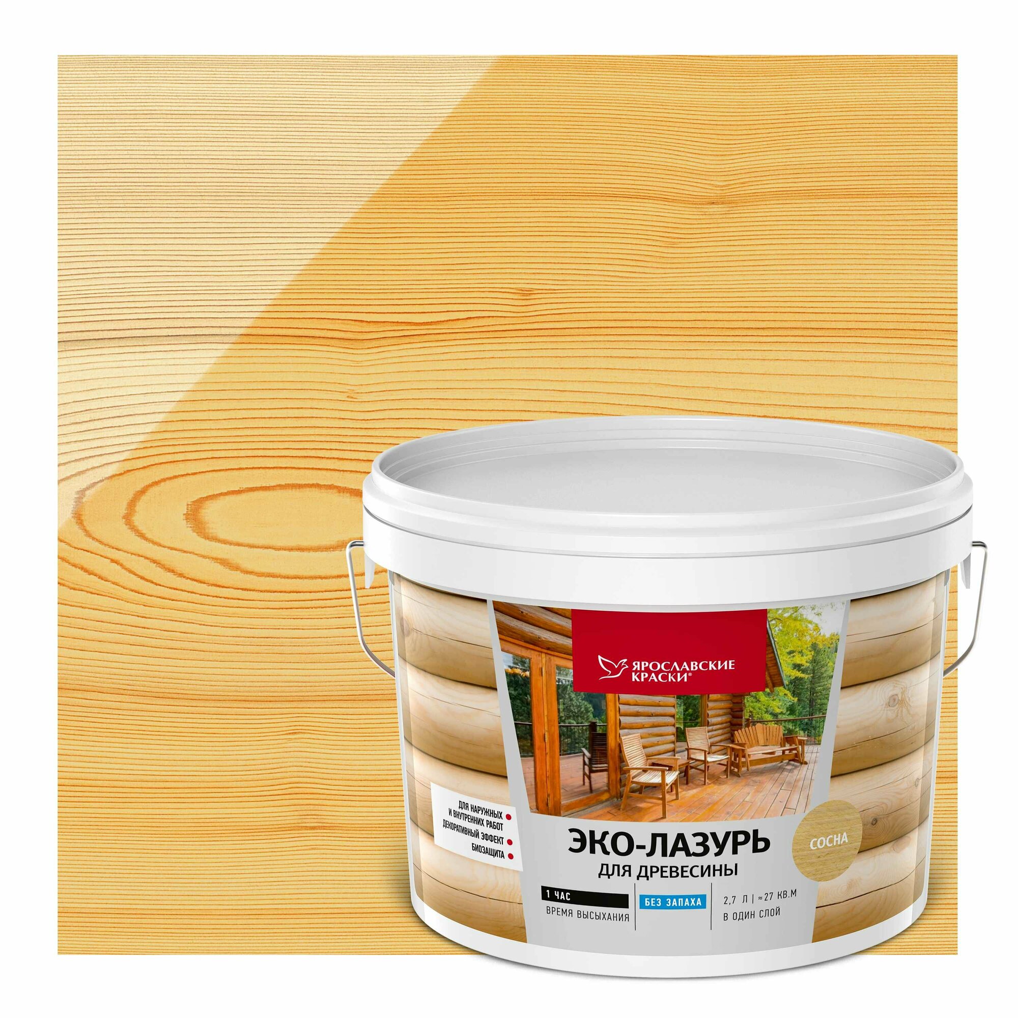 Пропитка для древесины Ярославские краски Эко-лазурь с декоративным эффектом и биозащитой цвет сосна 2.7 л