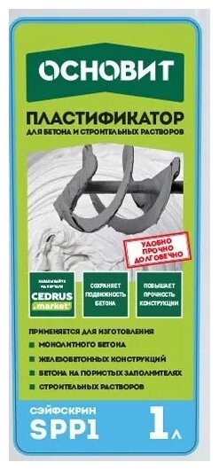 Пластификатор Основит Сэйфскрин SPP1 сокращает время и энергетические затраты на вибрирование смеси, сокращает расход цемента, повышает прочность и долговечность готовой конструкции, повышает морозостойкость бетона, сохраняет защитных свойств бетона по отношению к стальной арматуре, не содержит хлоридов и компонентов, приводящих к выделению аммиака. Рекомендуется к применению для изготовления армированных и предварительно напряженных железобетонных конструкций. Пластификатор Основит Сэйфскрин SPP1 вводится вместе с водой затворения в смесь и тщательно перемешивается. Может применяться одновременно с непластифицирующими воздухововлекающими, ускоряющими, стабилизирующими и противоморозными добавками. Рекомендуемые материалы: Кладочные растворы, монтажные смеси, стяжки и пескобетоны, цементно-песчаные растворы, бетоны низких и средних классов по прочности. Предназначен для добавления в бетоны и растворы. Обеспечивает пластифицирующие и водоредуцирующие свойства смеси, регулирует подвижность смеси. Дозировка от массы цемента: 0,2 - 2 %; Плотность: не менее 1,05 г/см³; Показатель pH: не менее 4; Температура окружающей среды и основания при работе: +5 до +35 °С; Температура эксплуатации: -50 до +70 °С; Объем: 1 л.