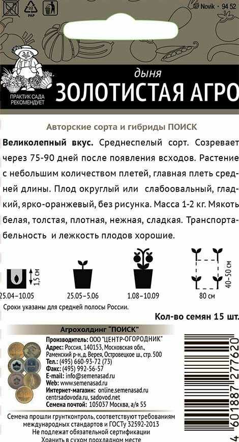 Дыня Золотистая Агро 1 5шт. ПОИСК
