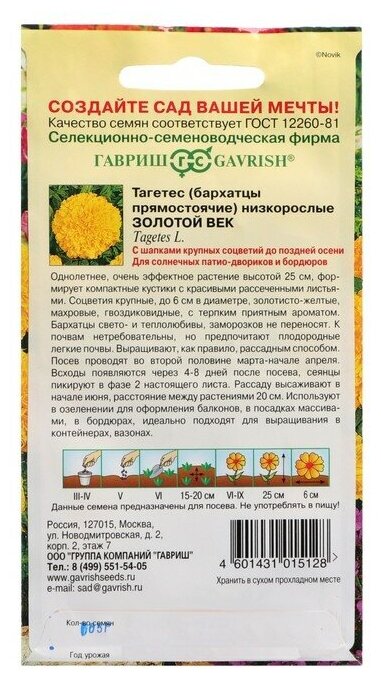 Семена Бархатцы прямостоячие Золотой век ГАВРИШ