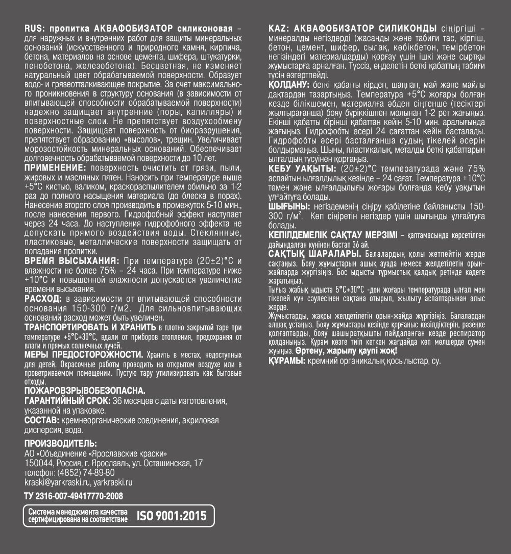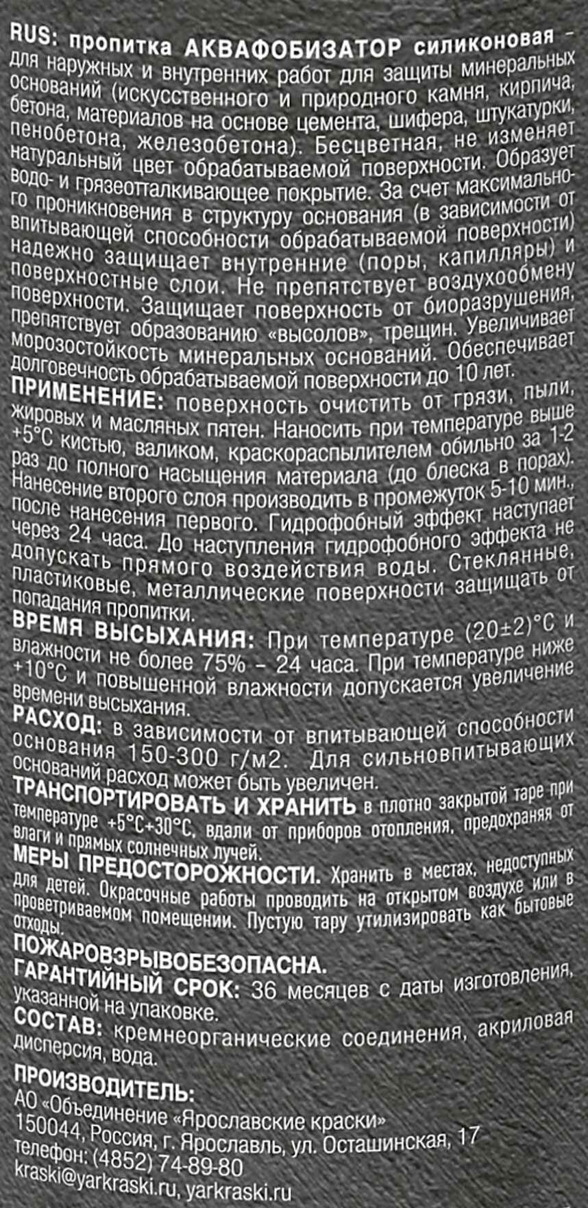 Пропитка Ярославские Краски Аквафобизатор силиконовая 1 л