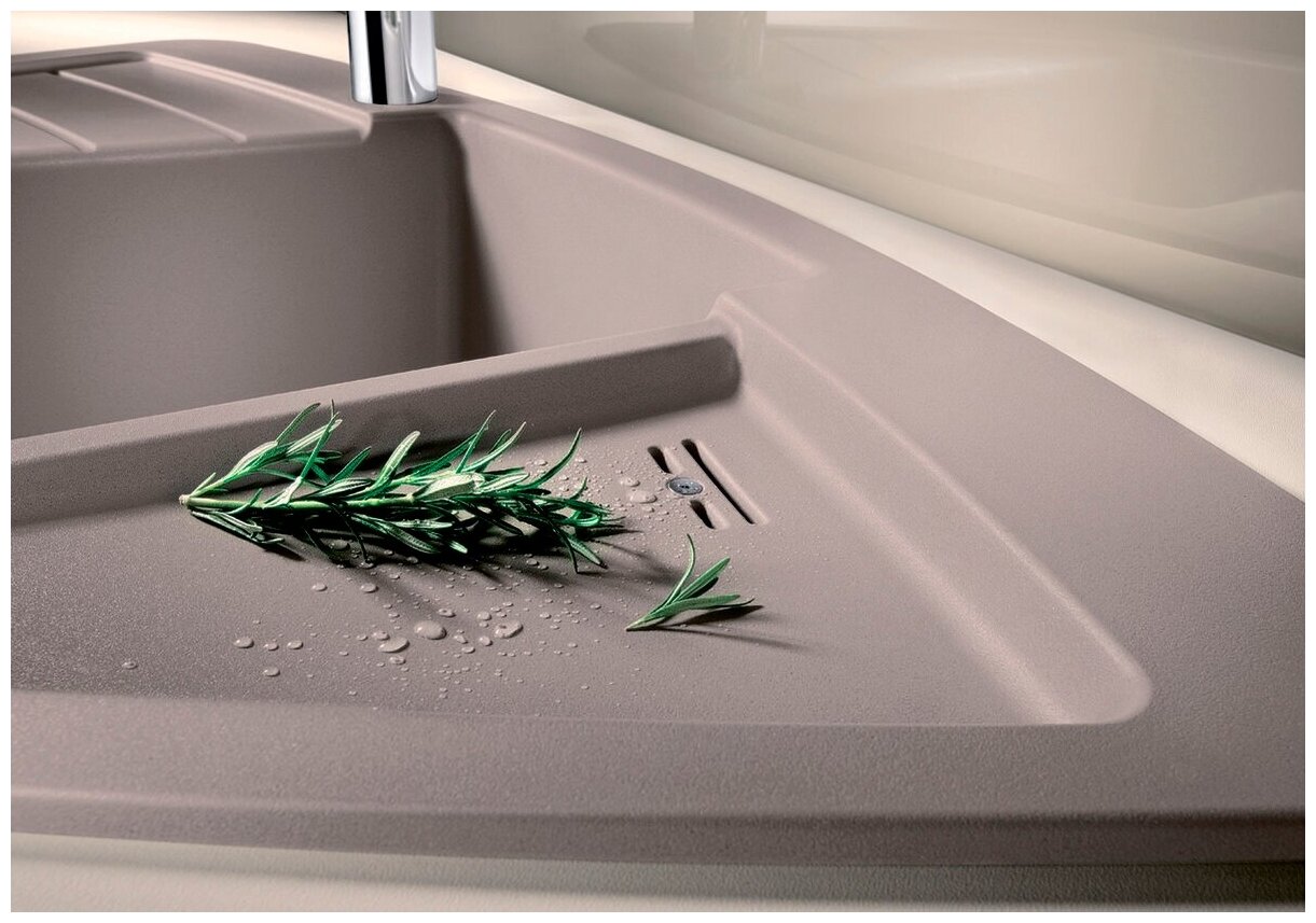 Мойка BLANCO ZIA 9 E нестандартной формы имеет вместительную чашу и два крыла для сушки посуды. Модель изготовлена из искусственного камня, имеет непористую поверхность, что обеспечивает легкое мытье и высокий уровень гигиены.