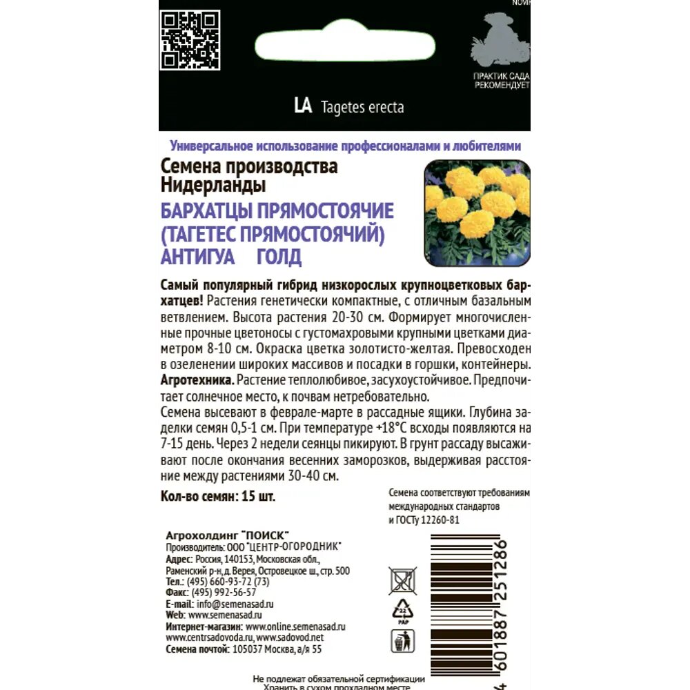Сервис сравнения цен СкидкаГИД предлагает сравнить цены на товар «Бархатцы прямостоячие Антигуа Голд 15 шт. ПОИСК»