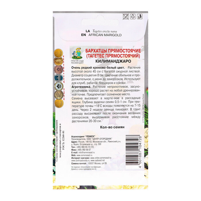 Сервис сравнения цен СкидкаГИД предлагает сравнить цены на товар «Бархатцы прямостоячие Килиманджаро 0.1 г ПОИСК»
