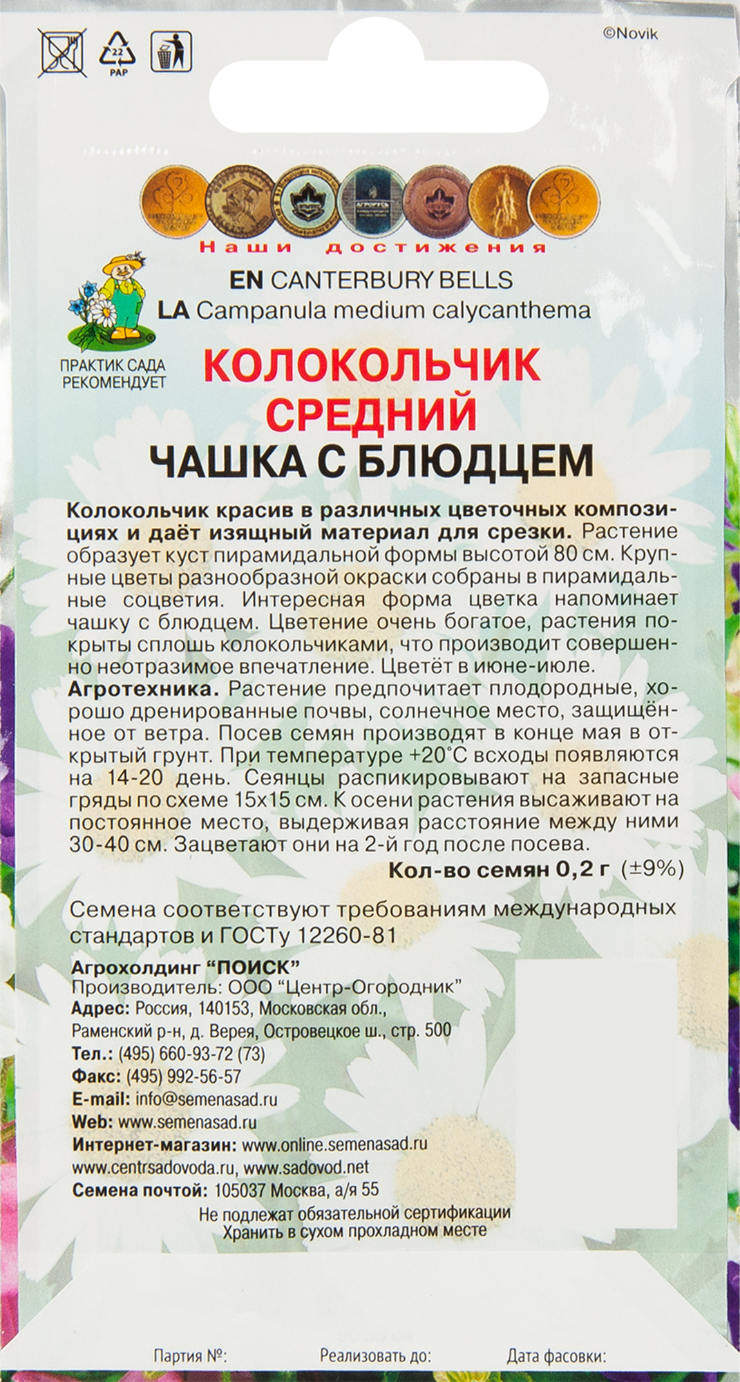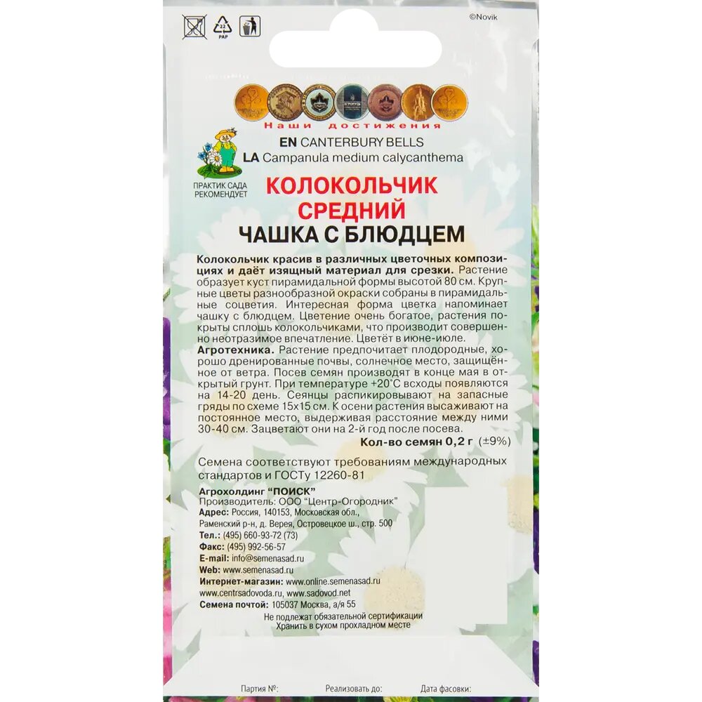 Приобрела уже летом в начале июля, т.к. узнала, что колокольчики еще не поздно посеять. Семян было очень много, но я побоялась, что плохо взойдут, посеяла все, а зря. Сначала росли туго, но в августе рост ускорился настолько, что в сентябре были огромные саженцы, которым стаканчик 200мл был мал. Высадила сеянцы в ОГ только в сентябре. Прекрасно пережили первые заморозки, выглядят сейчас на конец октября 2021 года прекрасно. Надеюсь перезимуют и в следующем году порадуют цветением.