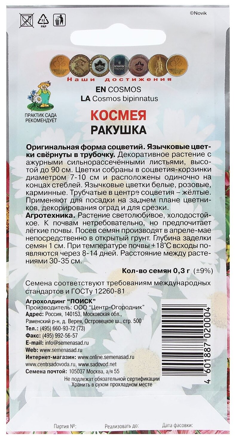 На сегодняшний день товар «Космея Ракушка 0.3 г ПОИСК» можно купить с кешбеком в 1 магазине: Яндекс.Маркет