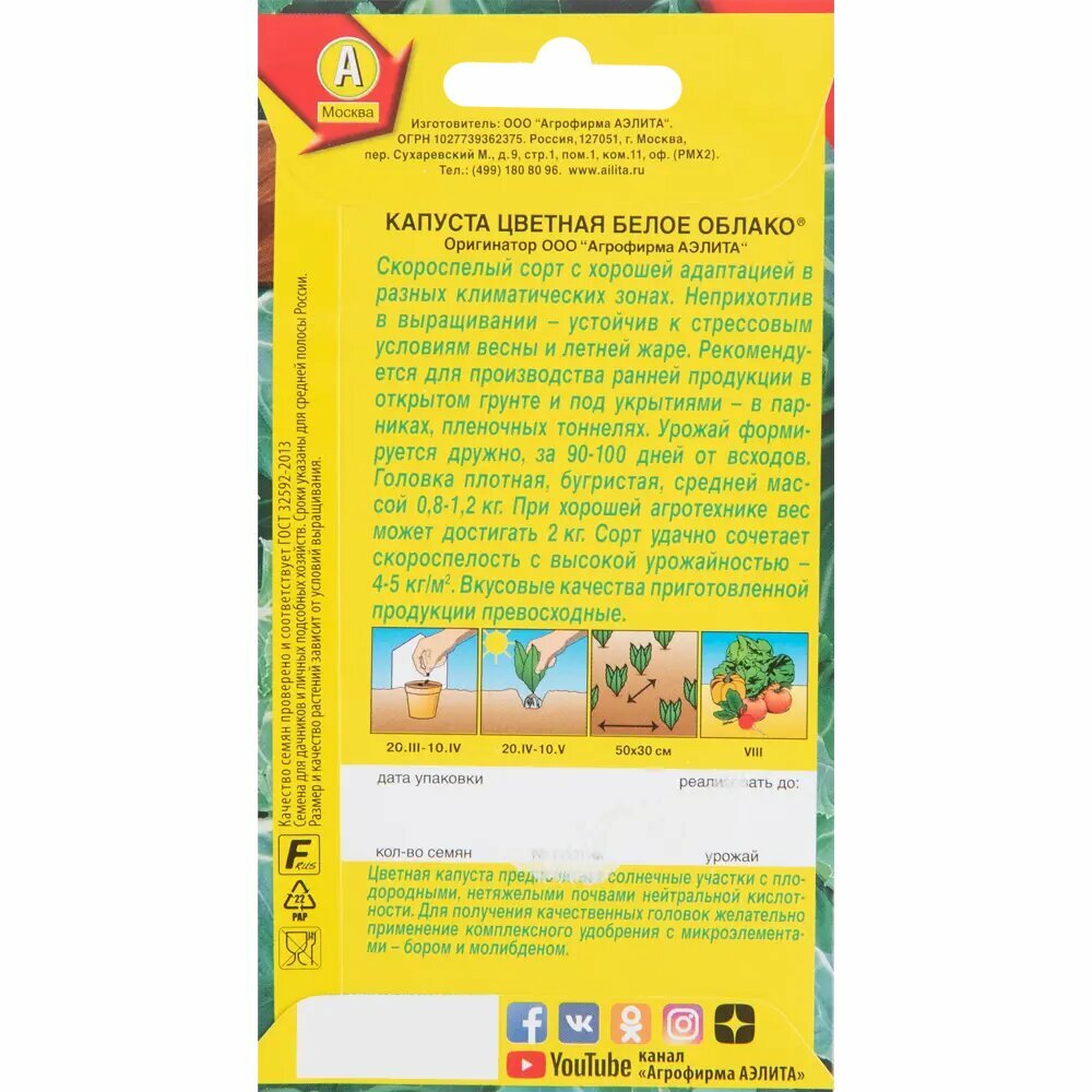 На сегодняшний день товар «Капуста цветная Белое облако 0.3 г Аэлита» можно купить с кешбеком в 1 магазине: Яндекс.Маркет