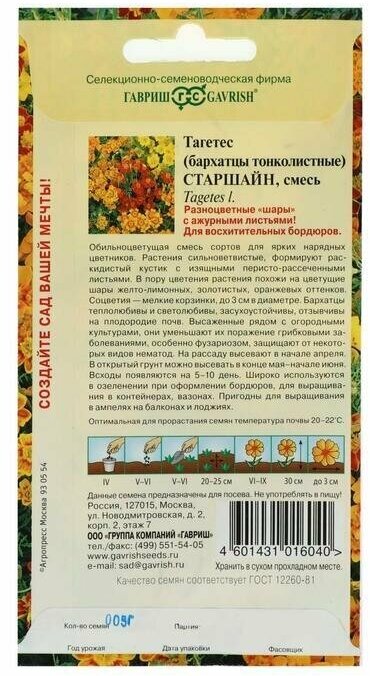 Сервис сравнения цен СкидкаГИД предлагает сравнить цены на товар «Бархатцы тонколистные Старшайн смесь 0.05 г ГАВРИШ»