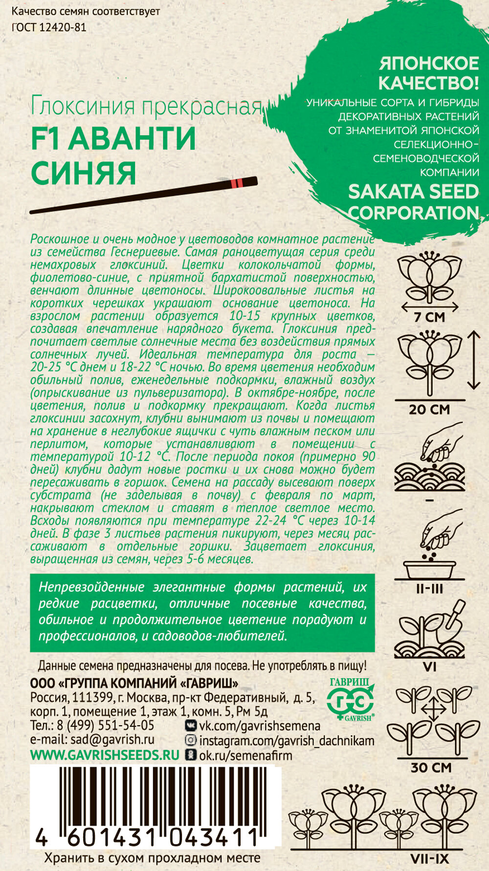 Сервис сравнения цен СкидкаГИД предлагает сравнить цены на товар «Глоксиния Аванти Саката синяя 5 шт. ГАВРИШ»