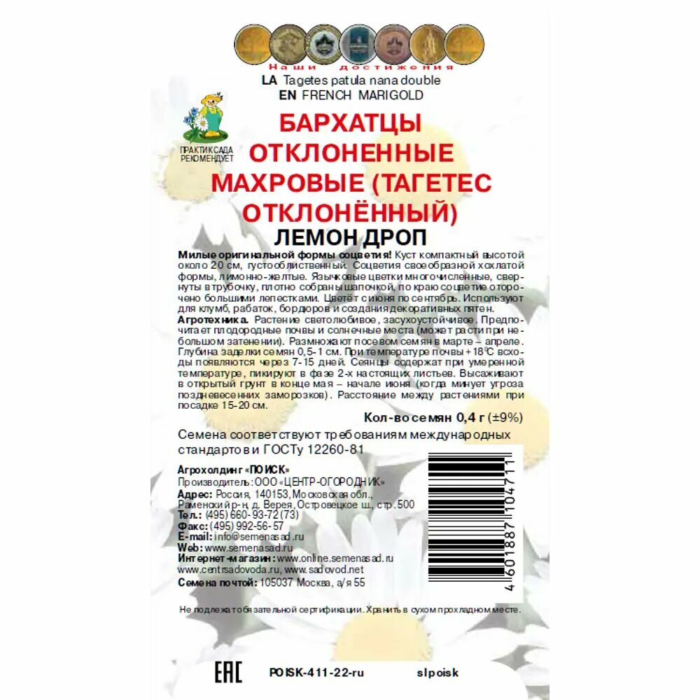 Сервис сравнения цен СкидкаГИД предлагает сравнить цены на товар «Бархатцы отклон махров Лемон дроп 0.4 г ПОИСК»