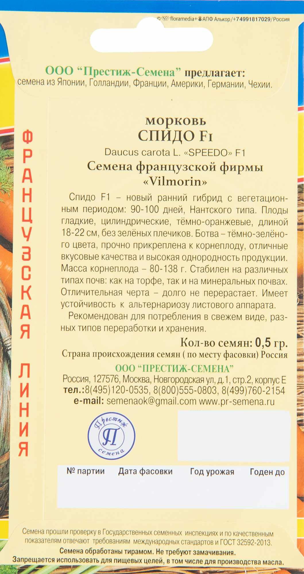 Морковь Спидо F1 0.5 гр ПРЕСТИЖ СЕМЕНА