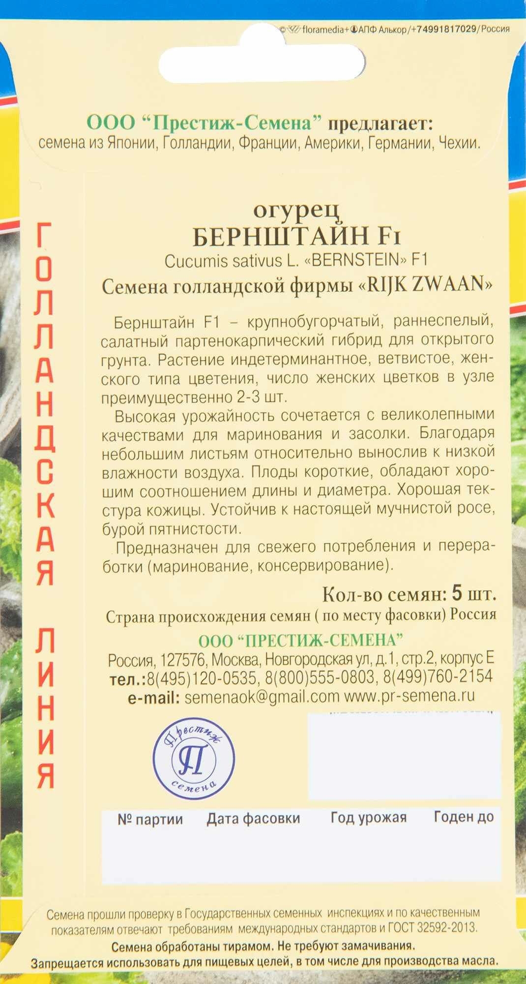 Огурец Бернштайн F1 5 шт. ПРЕСТИЖ СЕМЕНА