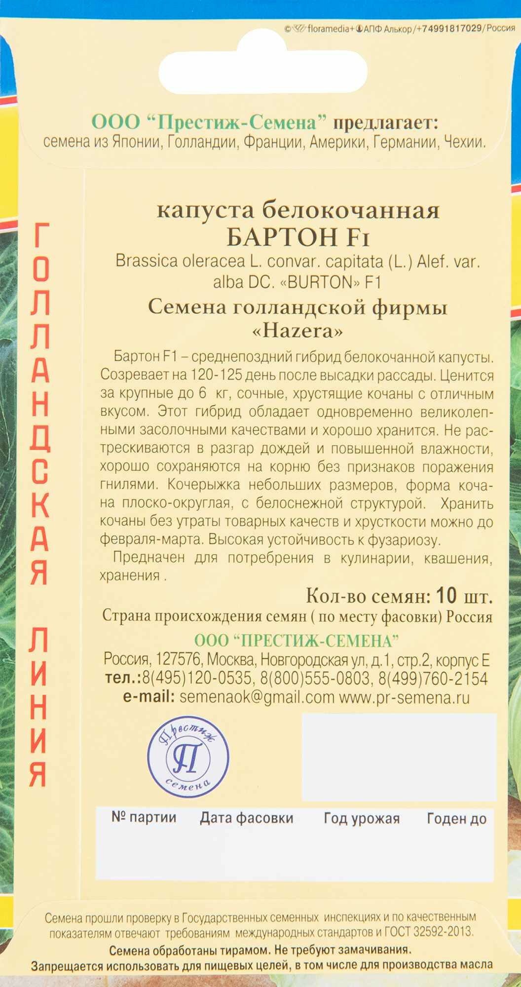 Сервис сравнения цен СкидкаГИД предлагает сравнить цены на товар «Капуста белокочанная Бартон F1 10 шт. ПРЕСТИЖ СЕМЕНА»