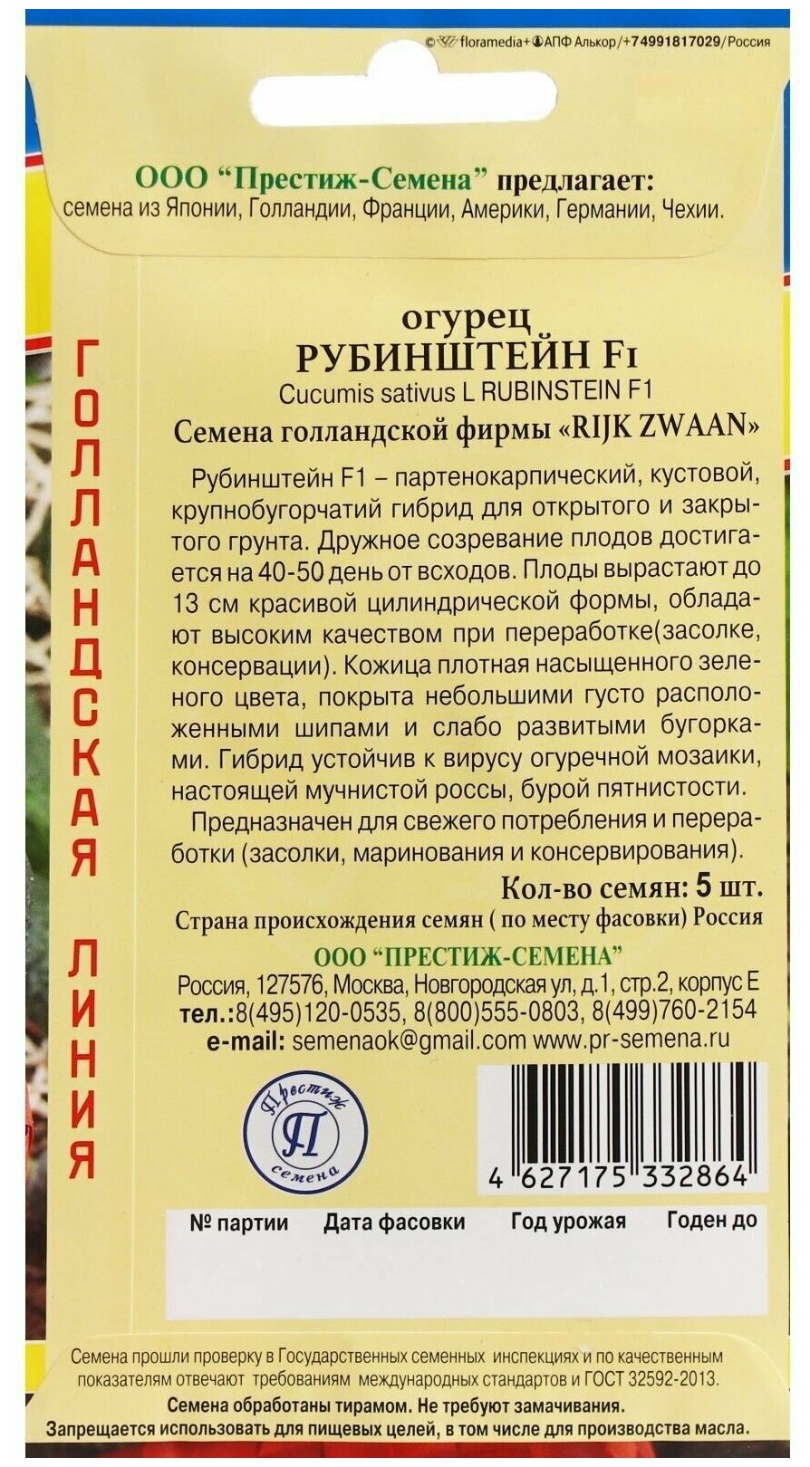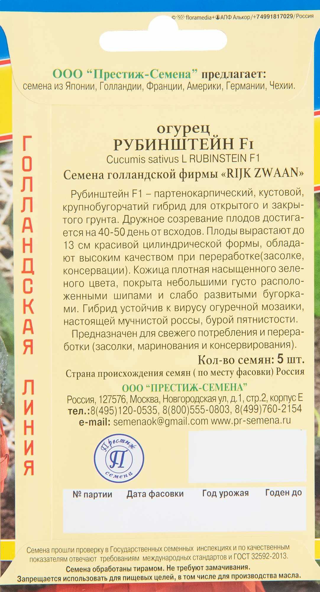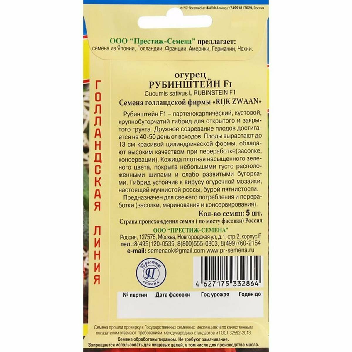 Огурец Рубинштейн F1 5 шт. ПРЕСТИЖ СЕМЕНА